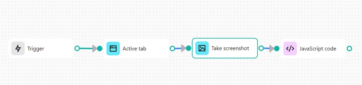 For instance, when you run a JS code on a current website or make a screenshot, you can use the active tab before connecting others (like the *take a screenshot* or *javascript code* block).
