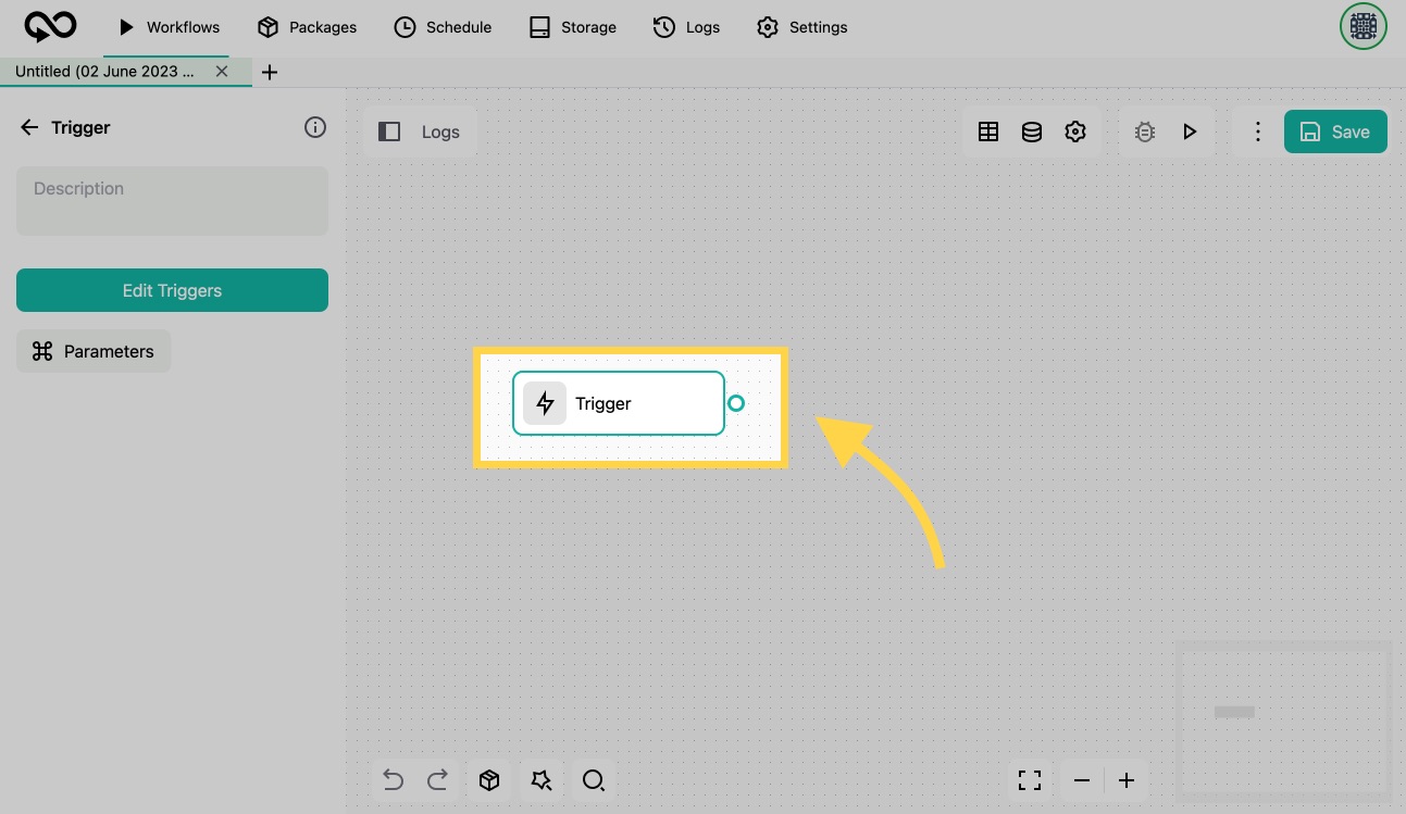 2. Your workflow will start with a trigger. A [trigger](https://docs.goless.com/blocks/general/trigger) is an action defining when and under what conditions your automation should execute. By default, the trigger is set to "Manual" mode, meaning the automation will only run when you initiate it yourself.